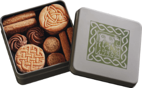 クッキー缶は当店のロゴをお入れしたオリジナルのクッキー缶でお送りします。